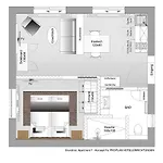 خزنة خاصة والتلفزيون ومنطقة جلوس مزودة في كل غرفة. منطقة الليل تعرض 1 غرفة نوم لتوفر إقامة 2 ضيف. 1 حمام مزود بمجفف الشعر والشراشف والمناشف.